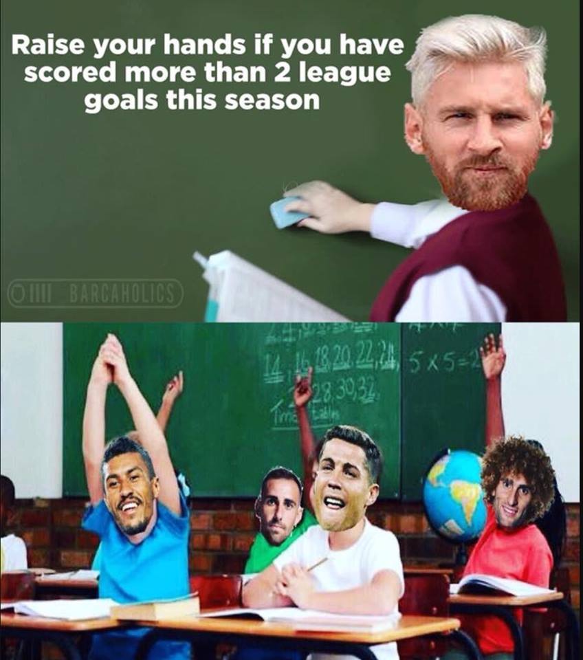 Mới đây, trang 101GreatGoals.com đăng tải bức ảnh chế Messi trong vai trò là một thầy giáo đứng giảng dạy về môn bóng đá, mà cụ thể là nâng cao hiệu suất ghi bàn ở mùa giải này.