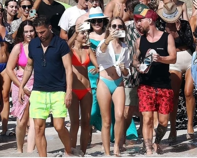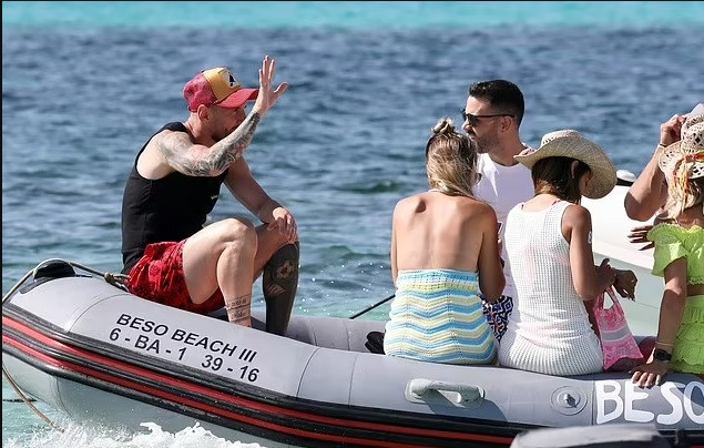 Messi và Fabregas được các người đẹp bikini tíu tít vây quanh chụp hình cùng khi cùng gia đình nhà Luis Suarez đi nghỉ ở Formentera, Tây Ban Nha.