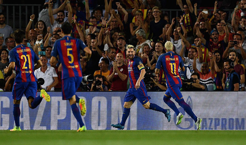 Trận đấu kết thúc. Barca mở màn Champions League 2016-17 bằng chiến thắng tưng bừng 7-0.