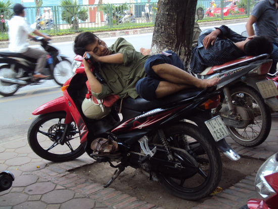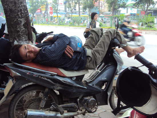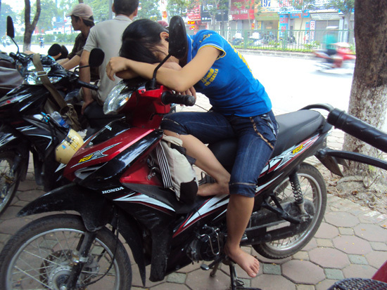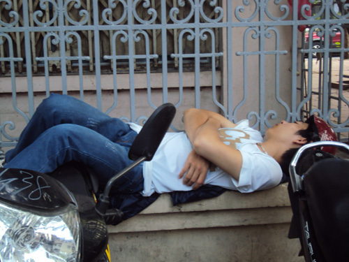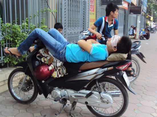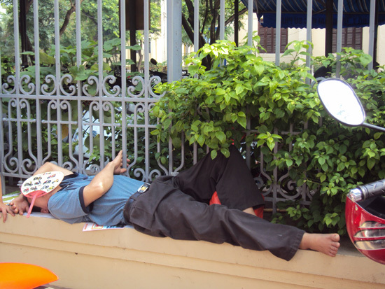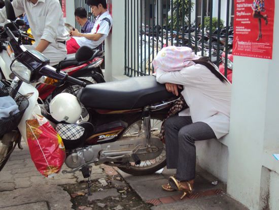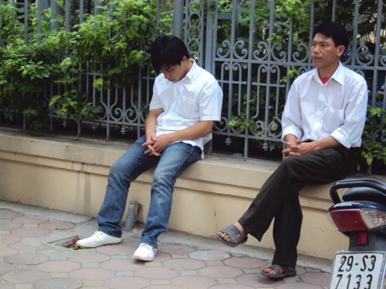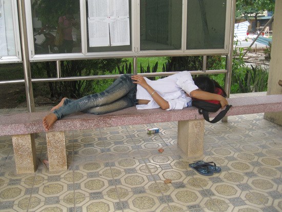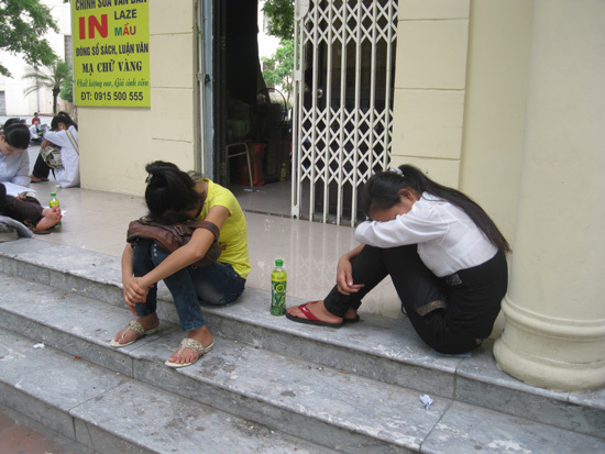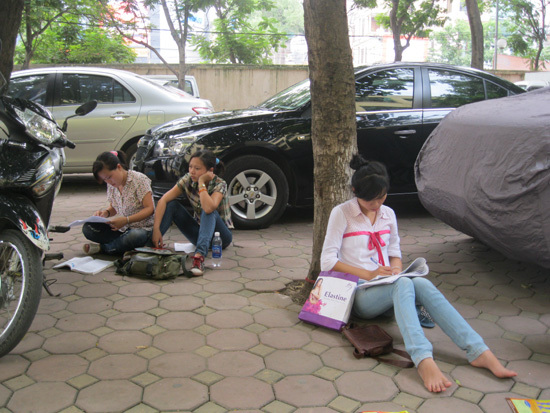 mệt mỏi là những hình ảnh về giờ nghỉ trưa của các sĩ tử và phụ huynh được phóng viên