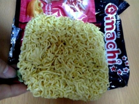 | Gói mì Omachi do chị Lan mua về bị mốc đen |