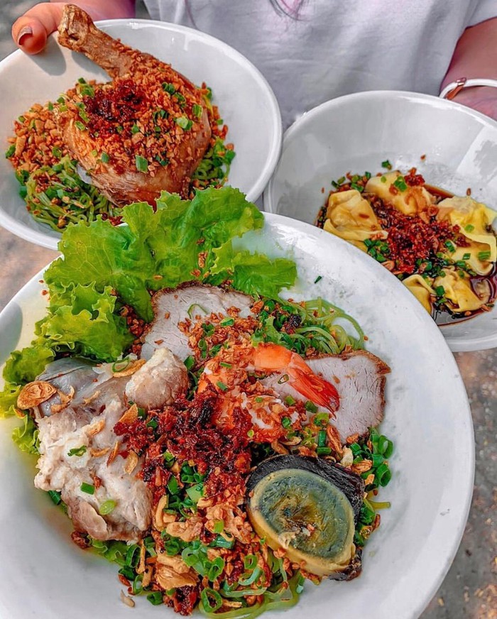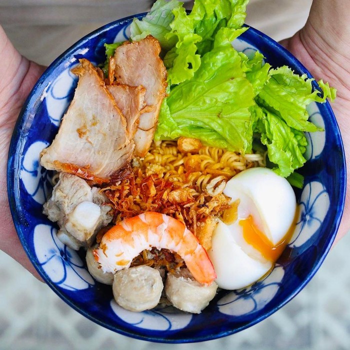 Đây là một phiên bản ẩm thực hấp dẫn mà những ai đam mê nấu nướng không thể bỏ qua. Mì sốt Hong Kong có sự kết hợp của mì khô kèm một số nguyên liệu như xá xíu, tôm, sườn, thịt gà... tùy theo sở thích của từng người. Hành lá, hành phi, xà lách là những thành phần làm tăng sức hút cho món ăn của bạn. Ảnh: Hetagram.