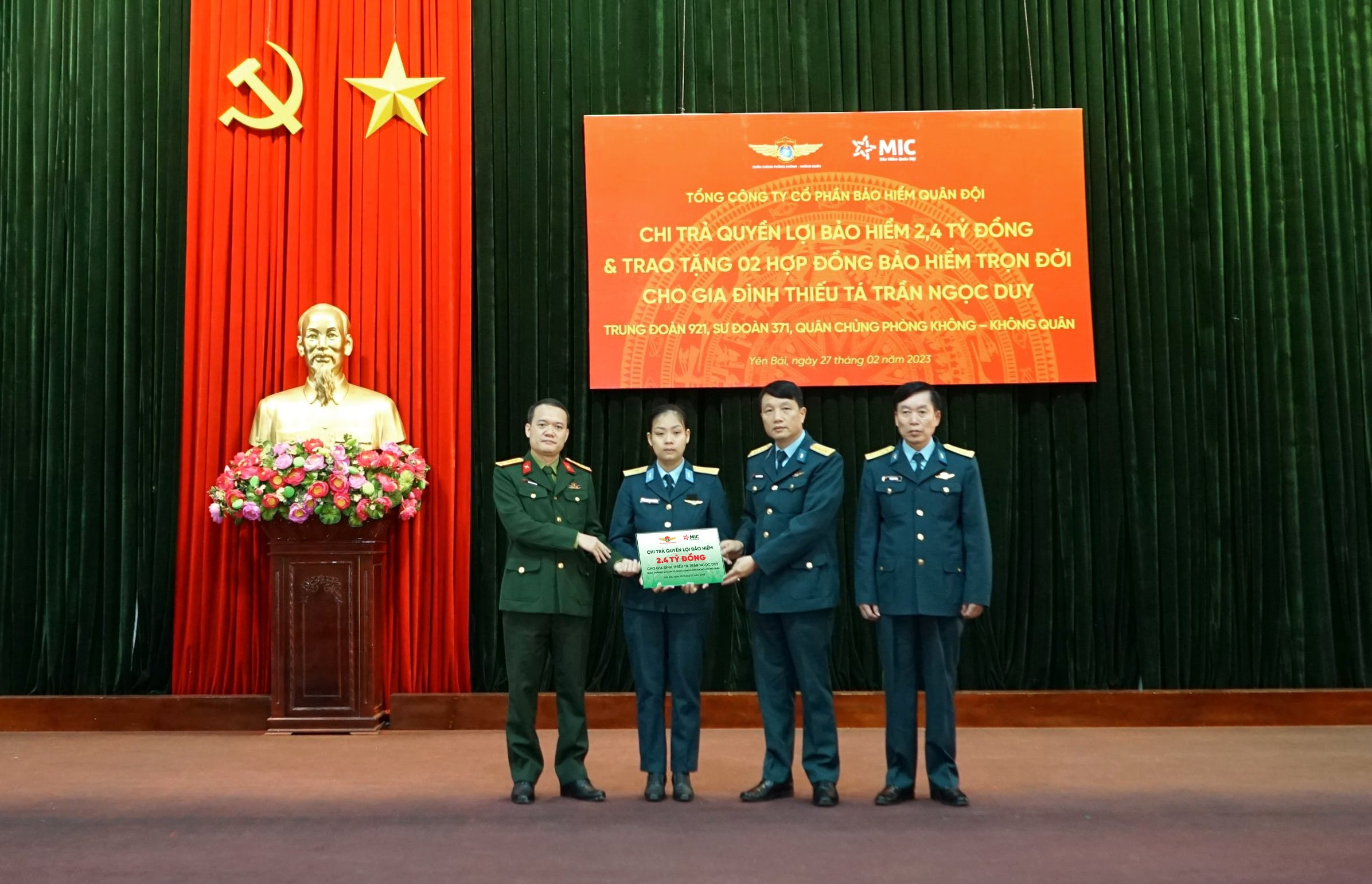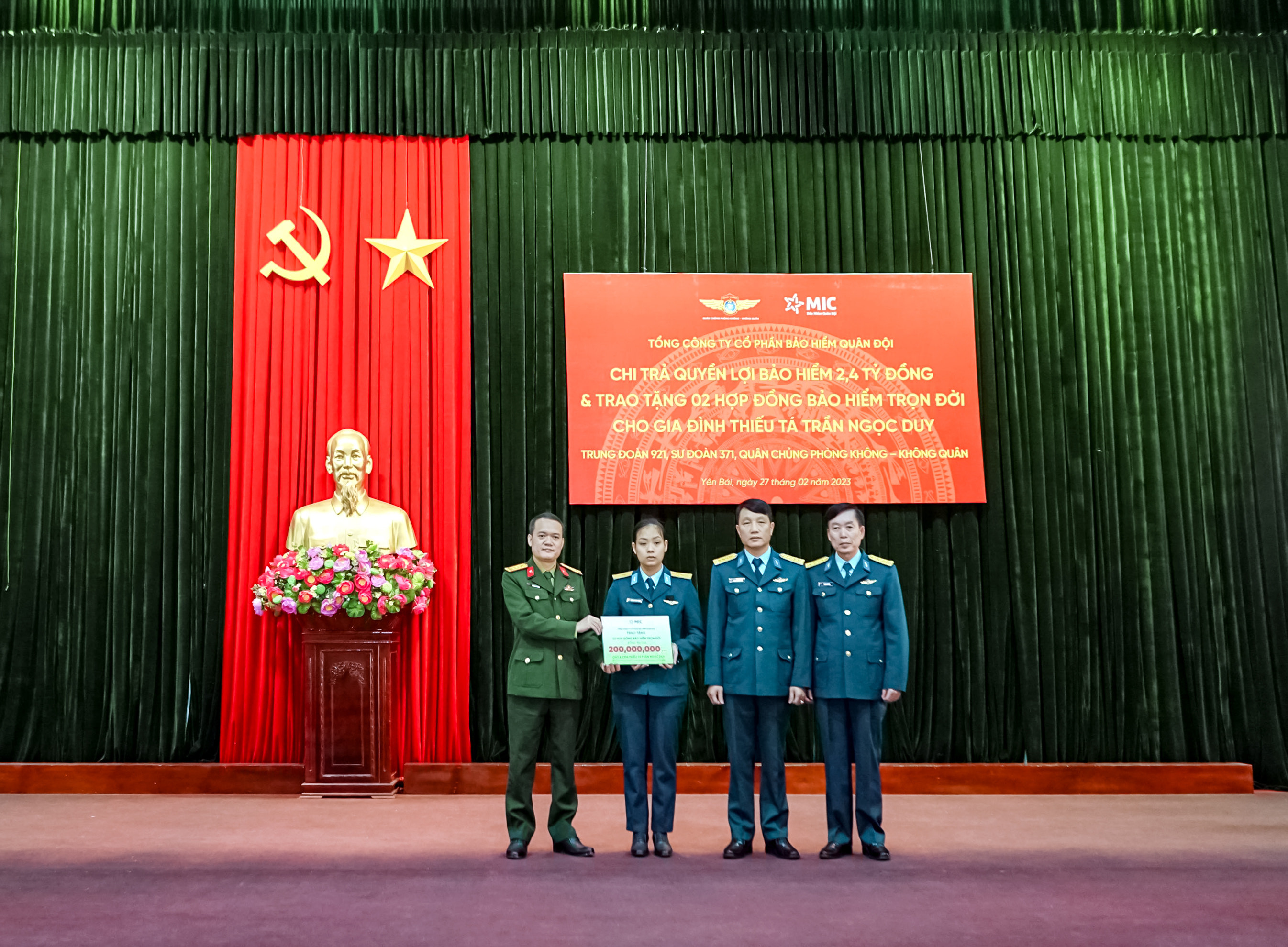 Theo đại diện MIC, sau khi nhận được thông tin, MIC đã tiến hành chi trả quyền lợi bảo hiểm trị giá 2,4 tỷ đồng vào ngày 1/2/2023 cho Quân chủng Phòng không - Không quân. Bảo hiểm tai nạn tổ bay cho phi công, học viên bay, cơ giới trên không và tuần thám viên, giáo viên dù, là sự quan tâm của Nhà nước, Quân chủng Phòng Không - Không quân dành cho cán bộ sĩ quan của đơn vị, mang tính chất nhân văn giúp cho quân nhân, gia đình khi không may xảy ra rủi ro sớm ổn định cuộc sống.