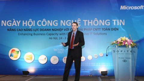 Tổng Giám đốc Microsoft Việt Nam Jamie Harper phát biểu khai mạc Microsoft Techdays 2012 (Ảnh: M.Hồng) |