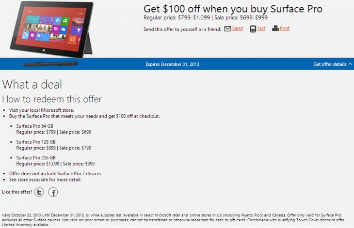 Hồi tháng 8, Microsoft đã từng giảm 100 USD giá của Surface Pro. Giờ đây, công ty lại phải tiếp tục chiến lược giảm giá này.