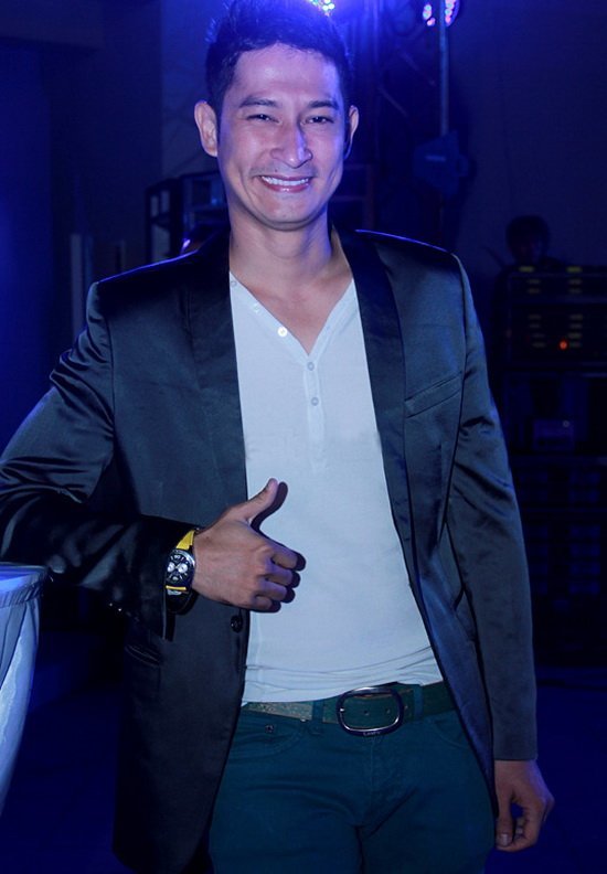 Nữ diễn viên cố cười tươi khi đọ dáng với MC Phan Anh
