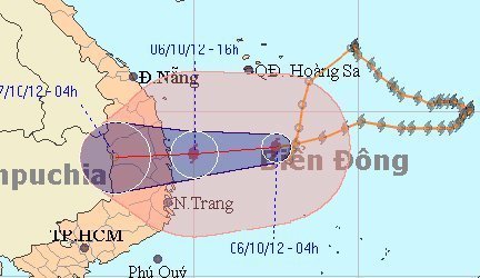 Với tốc độ này, chỉ 4h chiều nay (6/10), tâm bão sẽ nằm trên vùng biển các tỉnh Bình Định – Phú Yên. Sức gió mạnh nhất vùng gần tâm bão mạnh cấp 8 (tức là từ 62 đến 74 km một giờ), giật cấp 9, cấp 10.