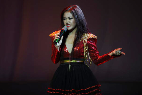 Văn Mai Hương đang trình bày một ca khúc tiếng Anh