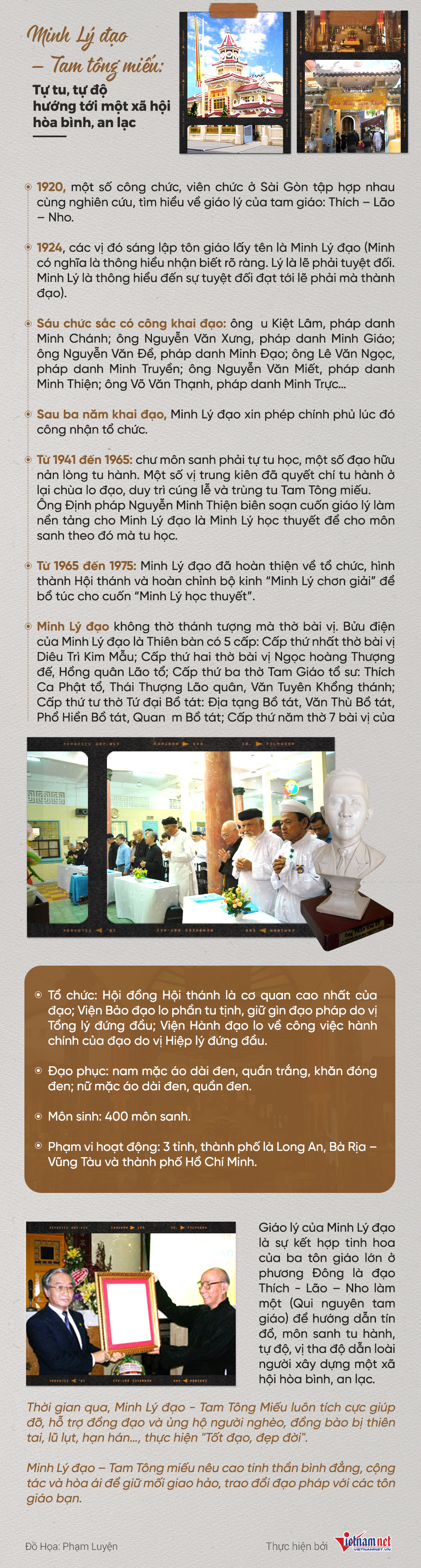 Giáo lý của Minh Lý Đạo là sự kết hợp tinh hoa của ba tôn giáo lớn ở Phương Đông, để hướng dẫn tín đồ, môn sanh tu hành, tự độ, vị tha độ dẫn loài người xây dựng một xã hội hòa bình, an lạc.