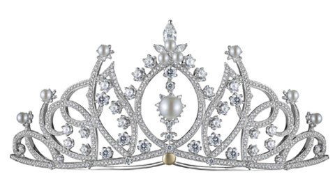 Được kết nên từ hàng trăm viên đá trắng và hàng chục viên ngọc trai, chiếc vương
