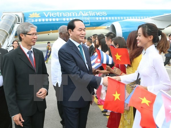Sau khi đến La Habana, vào chiều qua (giờ Cuba), Chủ tịch nước Trần Đại Quang và phu nhân cùng đoàn đại biểu VN đã đến chào lãnh tụ Cuba Fidel Castro.