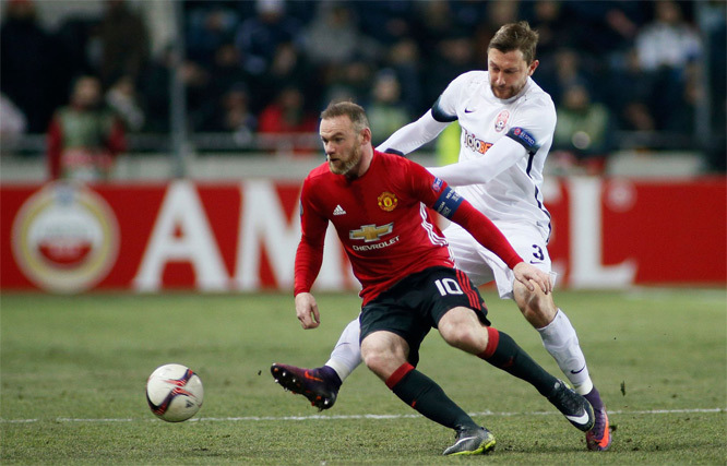 Từ pha nhả bóng lại của Ibrahimovic, Rooney cầu may với cú cứa lòng bên ngoài vòng cấm nhưng chưa đánh bại được Levchenko.