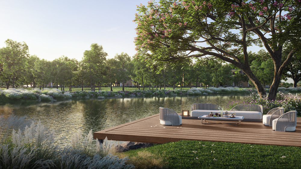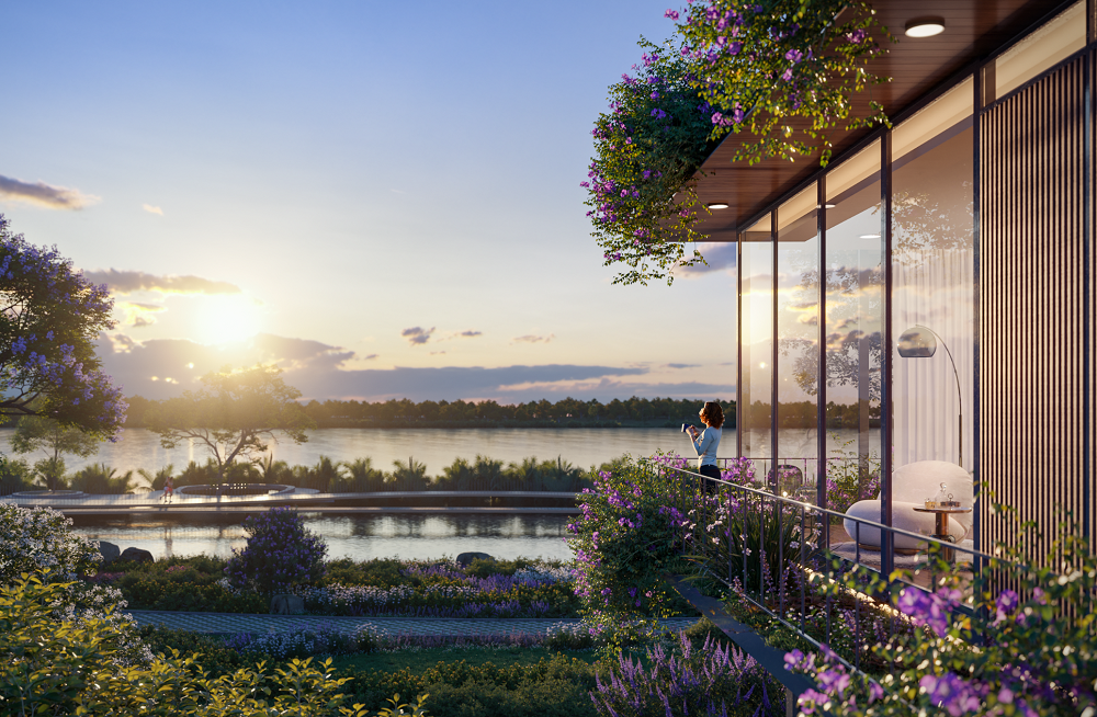 Tại Ecovillage Saigon River, cụ thể là phân khu Riverwalk, chủ nhân tương lai có thể tận hưởng trải nghiệm kết nối thiên nhiên xanh mát bên ngoài khi mật độ cây xanh lên tới 170 cây/người, 32ha diện tích mặt nước đi qua dự án, công viên có diện tích 4ha...