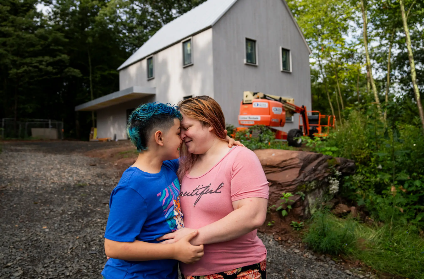 Cô giáo Kristen Calderon và con trai bên ngoài ngôi nhà tương lai của họ.