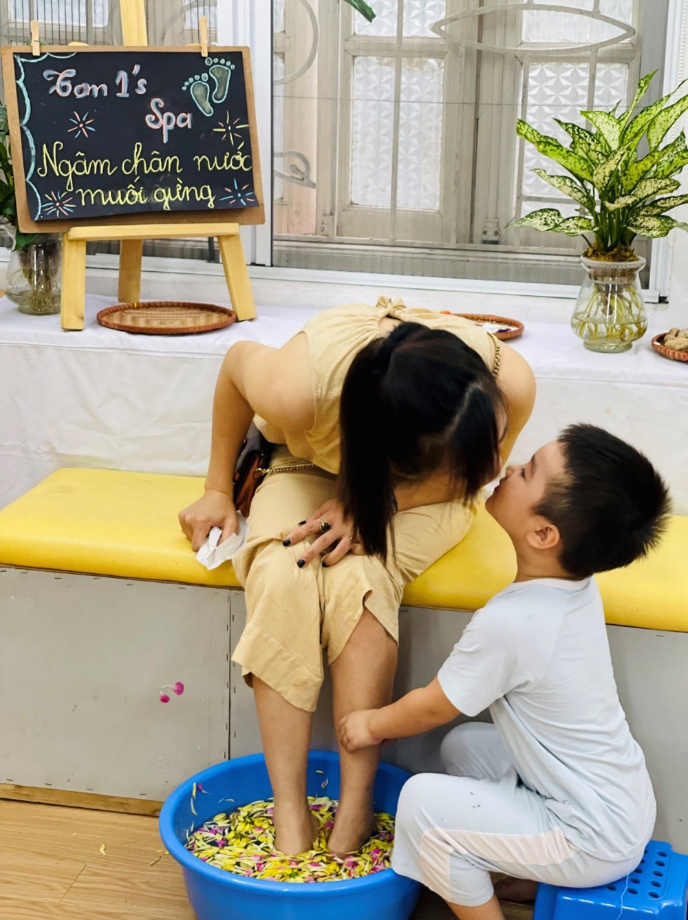 “Tham dự một hoạt động có ứng dụng giáo dục STEAM, tôi không khỏi bất ngờ khi con trai cùng các bạn được tìm hiểu về lợi ích của muối. Sau đó các bé còn tự giã gừng, pha muối với nước ấm, massage chân cho mẹ, tuy còn vụng về nhưng khiến tôi hết sức xúc động”, chị Đàm Thị Thanh Hoài, phụ huynh học sinh trường Mầm non Lý Thái Tổ 2 chia sẻ.