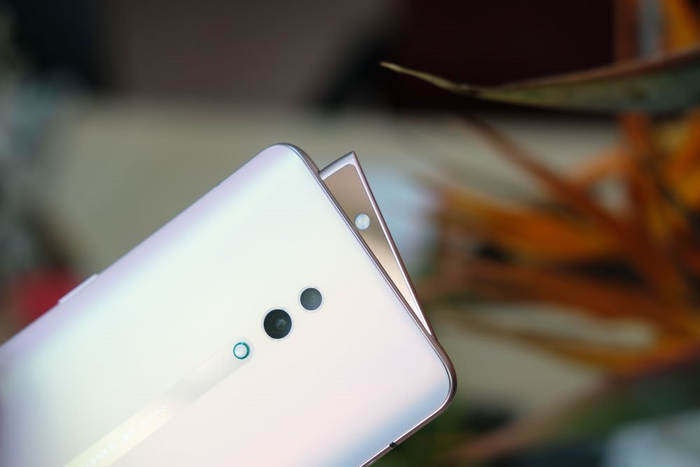 Màu trắng ngọc trai cũng được dùng để sơn lên camera "vây cá mập" giấu bên trong thân máy Oppo Reno. |