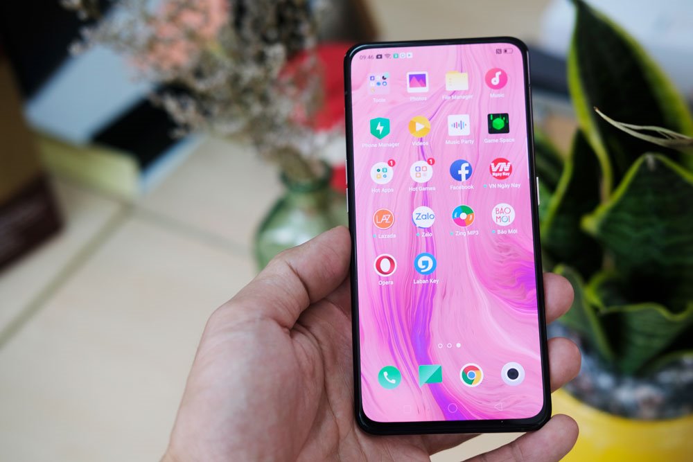 Nhờ giấu camera bên trong, màn hình của Oppo Reno hiển thị toàn cảnh rất đã mắt. |