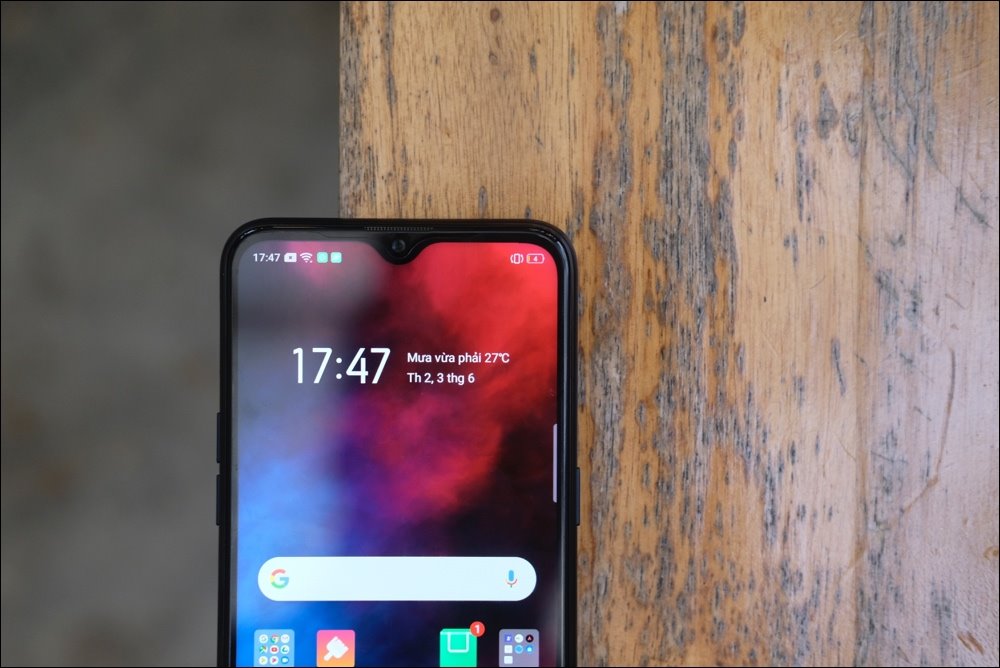 Màn hình máy kích thước 6,1 inch dạng giọt nước - tức camera trước đặt ngay trên màn hình, tạo thành một điểm nhỏ như giọt nước. |