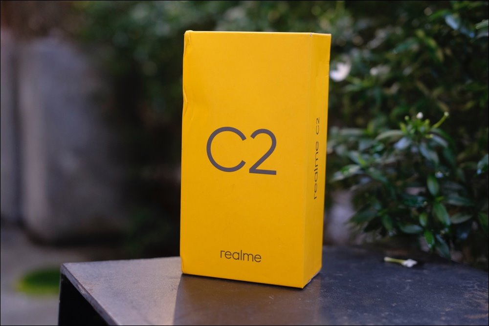 Realme C2 có hộp được làm màu vàng trẻ trung. |