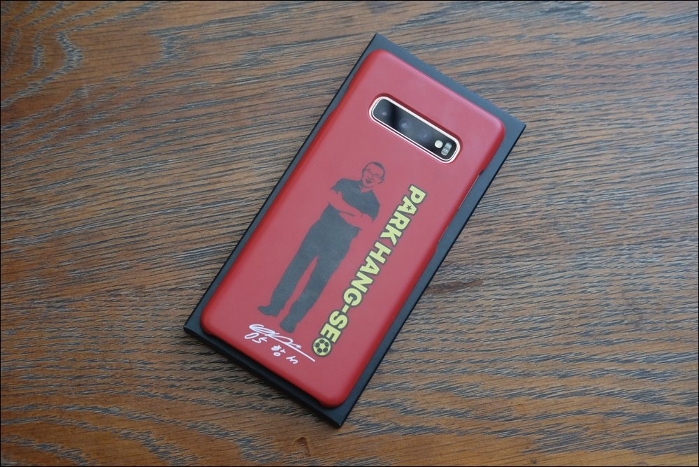 Chiếc S10+ sau khi gắn ốp lưng Park Hang Seo. |