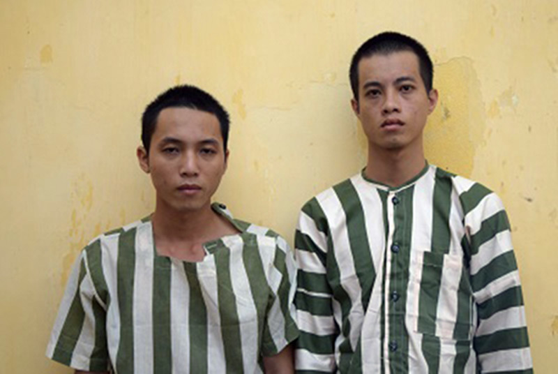 | Hai nghi phạm Luân và Chỉnh tại cơ quan công an. Ảnh: C.A |