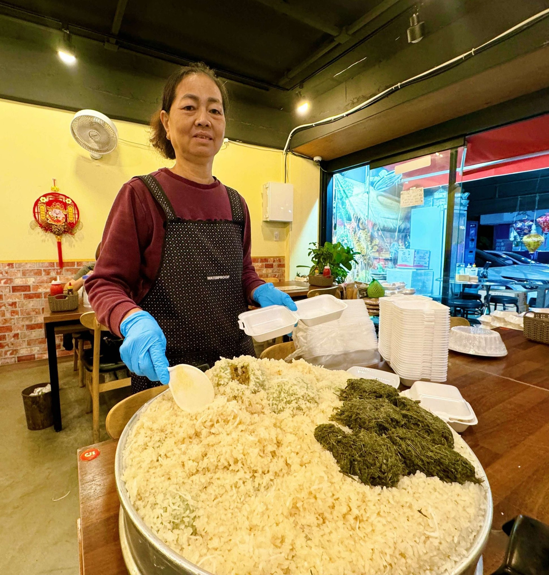 Hiện tại, chị cùng mẹ ruột là bà Lưu Thị Bút (64 tuổi) đảm nhiệm việc nấu nướng món ăn và bán tại quán. Trong đó, món xôi khúc do bà Bút tự tay làm, chế biến từ các nguyên liệu quen thuộc ở Việt Nam.