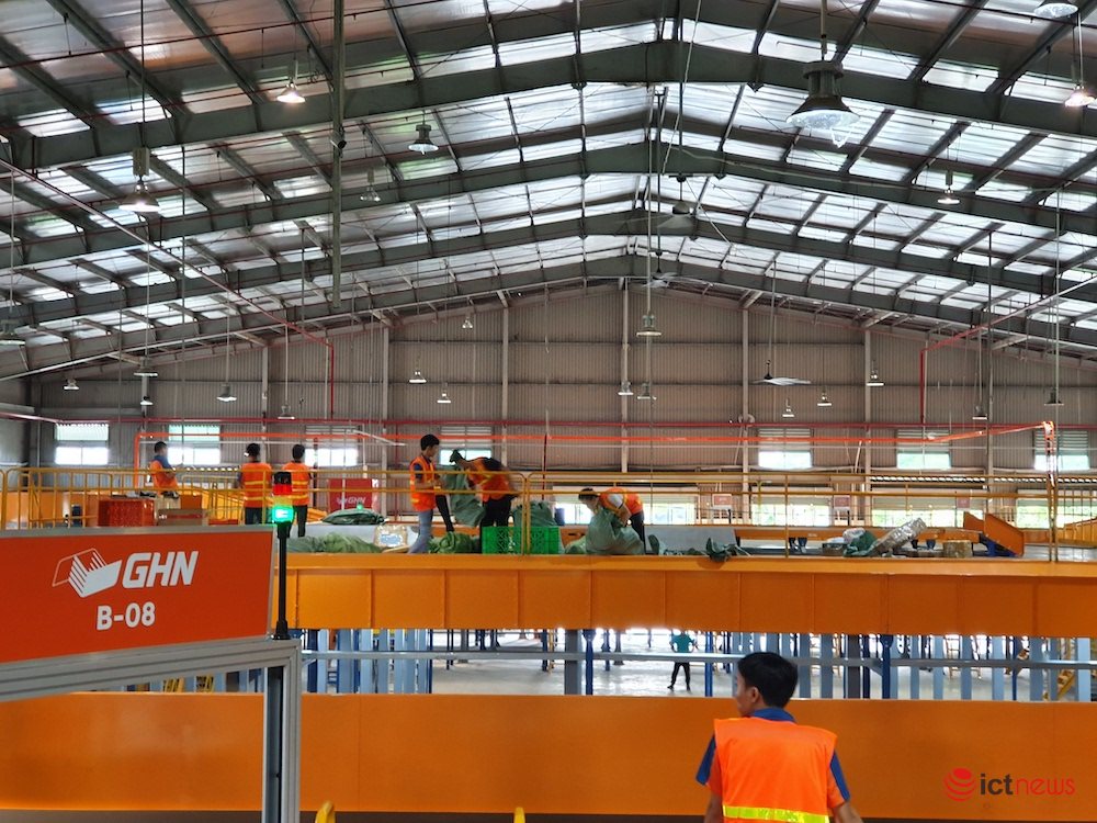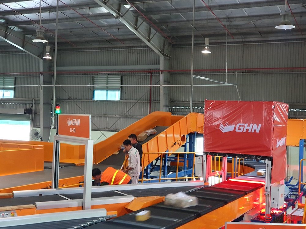 Giao Hàng Nhanh (GHN) vừa đưa vào vận hành kho phân loại hàng hoá tự động với diện tích 3.000 mét vuông tại TP.HCM. Kho phân loại này hầu hết được tự động hoá, có công suất tối đa 40 ngàn đơn hàng/giờ, tiết kiệm được gần ¾ lượng nhân công.