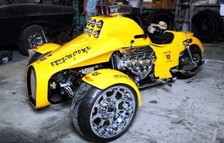 Xe có đến ba bánh nhưng phong cách của chiếc Trike này không phải là Can-am Spyder mà là theo xu hướng Hot Rod 4 bánh, do được tiết chế mất một bánh sau với việc thay bằng một bánh xe cực khủng. Chiếc Trike này sở hữu khối động cơ mạnh mẽ V8, công suất cực đại lên đến 750 mã lực nguyên bản của hãng Chevrolet.