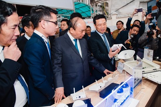 Thủ tướng chính phủ Nguyễn Xuân Phúc, Bộ trưởng Bộ TT&TT Nguyễn Mạnh Hùng và các quan khách thăm gian triển lãm của MobiFone |