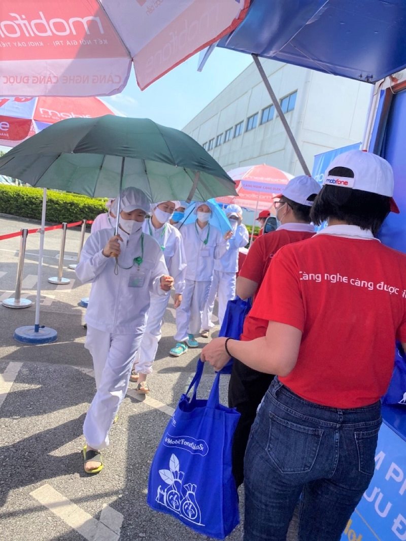 12h trưa ngày 20/5, giữa cái nắng hè đổ lửa, trong khoảng sân râm mát của một nhà máy trong khu công nghiệp Quang Minh, thuộc huyện Mê Linh, ngoại thành Hà Nội, một nhóm bạn trẻ MobiFone đã tề tựu bên chiếc xe phát gạo lưu động. Pano, biển hiệu và những chiếc ô che nắng ken san sát tạo bóng râm, những chiếc bàn sát khuẩn, ghi tên tiếp nhận và những phần quà đã sẵn sàng. Công tác chuẩn bị phải tiến hành trước đó từ rất sớm bởi chỉ có khoảng 1 tiếng đến 1 tiếng rưỡi cho hoạt động này, lúc công nhân tranh thủ giữa hai ca làm việc.