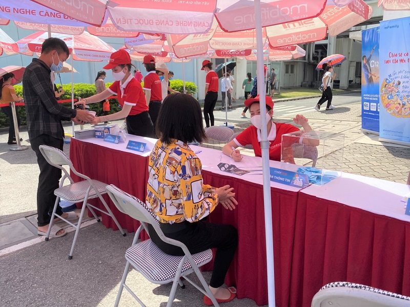 Khu vực bàn tư vấn các gói cước, sản phẩm cho công nhân cũng hết sức sôi động. Một nhóm bạn trẻ quan tâm đến gói cước C120 của MobiFone, trong khi người khác đang nghiên cứu một dãy số SIM đẹp của MobiFone được bán với giá “không thể tìm thấy” trên thị trường Mê Linh. Kéo chiếc mũ bảo hộ khỏi đầu, anh Dũng, công nhân nhà máy Terumo nở nụ cười tươi tắn: Những gói cước C120, MF150 của MobiFone cực kỳ vừa ý với anh em công nhân trẻ, vì vừa nhắn tin gọi điện thỏa thích, lại vừa “rủng rỉnh” data. Những món quà của MobiFone cũng hết sức bắt mắt và có độ “tinh” hơn bình thường, vì thế bọn em rất mến MobiFone”.