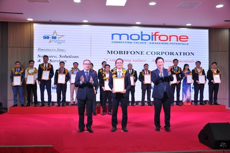 Với sự bình chọn công tâm, khách quan của Hội đồng bình chọn do TS. Mai Liêm Trực - Nguyên Thứ trưởng thường trực Bộ Bưu chính Viễn thông làm Chủ tịch cùng 20 thành viên, trên cơ sở thẩm định thực tế tại các doanh nghiệp, chương trình 50+10 Doanh nghiệp CNTT hàng đầu Việt Nam đã công bố danh sách các doanh nghiệp tiêu biểu. Trong đó, Tổng công ty Viễn thông MobiFone vinh dự được bình chọn là một trong 50 doanh nghiệp CNTT hàng đầu 2019 và là một trong 10 doanh nghiệp có năng lực công nghệ 4.0 tiêu biểu của Việt Nam 2019. MobiFone sẽ được giới thiệu trong Ấn phẩm "Vietnam’s 50+10 Leading IT Companies 2018” với 3 ngôn ngữ tiếng Việt, tiếng Anh và tiếng Nhật để quảng bá tới trên 10.000 đối tác quốc tế tại 100 quốc gia và vùng lãnh thổ trên toàn cầu trong mạng lưới hợp tác quốc tế của Vinasa.