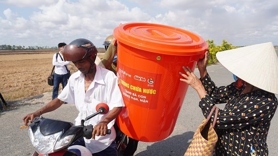 “MobiFone luôn chia sẻ và thấu hiểu khó khăn của bà con vùng hạn, mặn. Những thùng chứa nước chúng tôi mang đến là món quà nhỏ của nhiều tấm lòng, mong bà con sớm vượt qua khó khăn lúc này và sớm ổn định cuộc sống”, đại diện MobiFone cho hay.