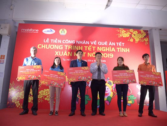 Dịp Tết Nguyên đán Kỷ Hợi 2019, Tổng công ty Viễn thông MobiFone sẽ trao tặng 1.200 vé tàu cho công nhân các khu công nghiệp, khu chế xuất trên địa bàn các tỉnh Bình Dương và Đồng Nai. 1.200 công nhân sẽ về quê trên các chuyến tàu được ngành đường sắt bố trí riêng dành cho chương trình với các suất ăn được phục vụ đầy đủ. Cụ thể chuyến tàu SE14 xuất phát từ ga Sài Gòn vào lúc 22h20 ngày 29/1/2019 chở 212 công nhân và gia đình, về đến ga Vinh vào 6h26 phút ngày 31/1/2019 (tức ngày 26 tháng Chạp âm lịch); chuyến tàu TN10 xuất phát từ ga Sài Gòn vào lúc 23h15 ngày 29/1/2019 chở 532 công nhân và gia đình, về đến ga Thanh Hóa lúc 14h35 ngày 31/1/2019 (tức ngày 26 tháng Chạp âm lịch); chuyến tàu SE20 xuất phát từ ga Sài Gòn lúc 21h25 phút ngày 30/1/2019 chở 456 công nhân và gia đình, về đến ga Hà Nội lúc 11h16 phút ngày 1/2/2019 (tức ngày 27 tháng Chạp âm lịch).