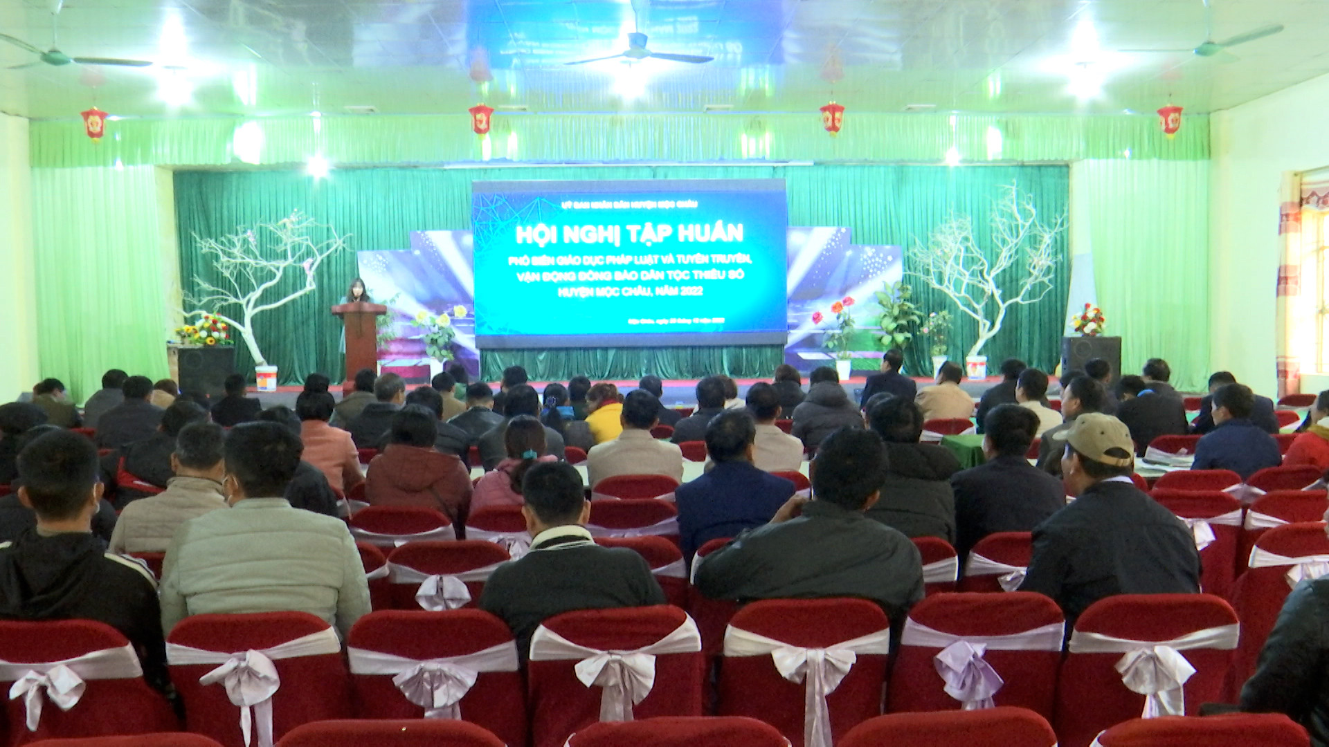 Huyện Mộc Châu, tỉnh Sơn La vừa tổ chức hội nghị tập huấn “Phổ biến giáo dục pháp luật và tuyên truyền, vận động đồng bào dân tộc thiểu số”, triển khai nội dung số 2, tiểu dự án 1 thuộc dự án 10 của Chương trình mục tiêu quốc gia theo Quyết định 1719 của Thủ tướng chính phủ.