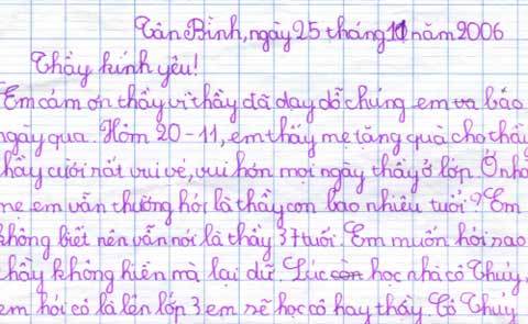 Hôm 20/11, em thấy mẹ tặng quà cho thầy, thầy cười rất vui vẻ, vui hơn mọi ngày thầy ở lớp.