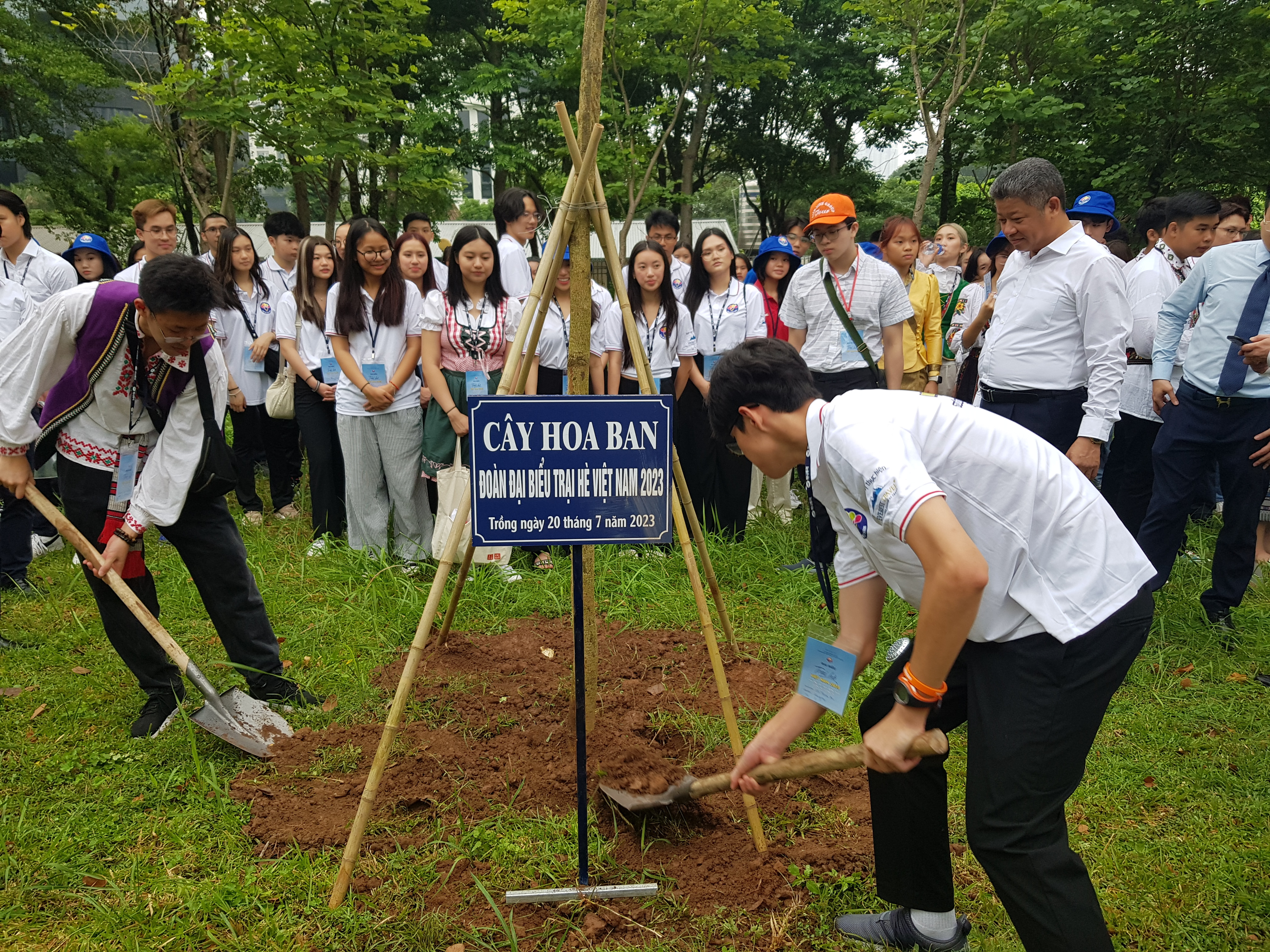 Trong khuôn khổ chương trình Trại hè 2023, đoàn đại biểu thanh, thiếu niên kiều bào còn tham gia trồng cây cùng lãnh đạo Bộ Ngoại giao; Ủy ban Thành phố Hà Nội; trường đại học Quốc tế; trường đại học Quốc gia Hà Nội tại khu vực trụ sở Bộ Ngoại Giao.