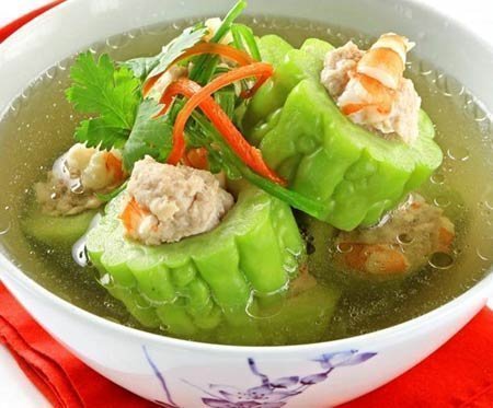 Một món ăn dân dã, quen thuộc được người miền Nam dùng trong ngày Tết là canh khổ qua dồn thịt. Vị đắng thanh của trái khổ qua hòa cùng vị ngọt của thịt và nước dùng luôn làm ngon miệng người thưởng thức, giúp làm thanh mát cơ thể, đặc biệt trong những ngày đầu năm.