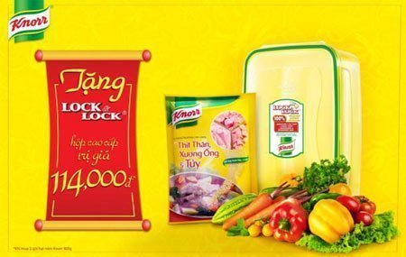 Ngoài ra, Knorr còn dành tặng một món quà Tết thật đặc biệt đến người tiêu dùng thông qua chương trình khuyến mãi: “Mua 2 gói Knorr 900g, tặng 1 hộp nhựa cao cấp Lock&Lock trị giá 114.000 đồng”. Chương trình có mặt tại hệ thống các siêu thị và cửa hàng bán lẻ trên khắp cả nước trong mùa Tết 2013 kể từ tháng 12/2012.
