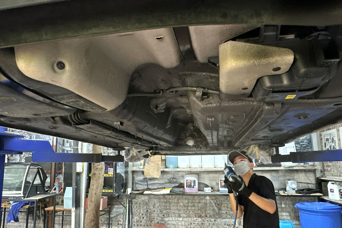 Lớp phủ gầm không chỉ hạn chế tình trạng rỉ sét mà còn giúp giảm tiếng ồn, giữ cho phần khung xe bền hơn về lâu dài.