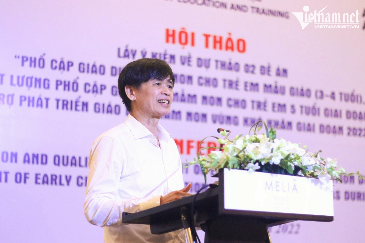 “Theo số liệu thống kê của Bộ GD-ĐT, hằng năm có khoảng 300.000 trẻ em mẫu giáo chưa được huy động đến trường để tiếp cận Chương trình giáo dục mầm non. Nhiều trẻ em được tiếp cận giáo dục mầm non muộn so với độ tuổi, đặc biệt là trẻ em tại các vùng khó khăn. Đối với vùng khó khăn và đặc biệt khó khăn, còn 81% trẻ nhà trẻ, 13,4% trẻ mẫu giáo chưa được tiếp cận giáo dục mầm non" - ông Minh nói.