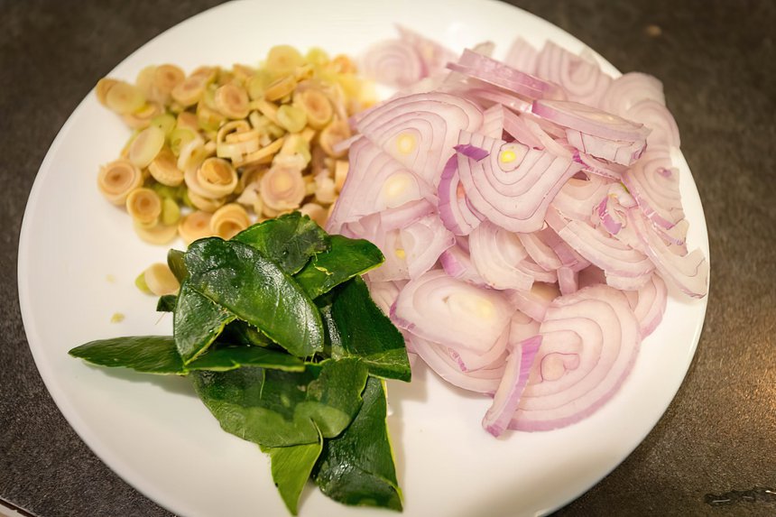 - Lá chanh rửa sạch, cắt làm đôi.