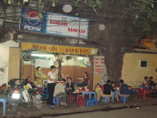 Vỉa hè là quán ăn, chỉ cần một vài chiếc bàn con, một vài chiếc ghế con là người ta có thể xì xụp, thích thú thưởng thức đủ loại món ăn.