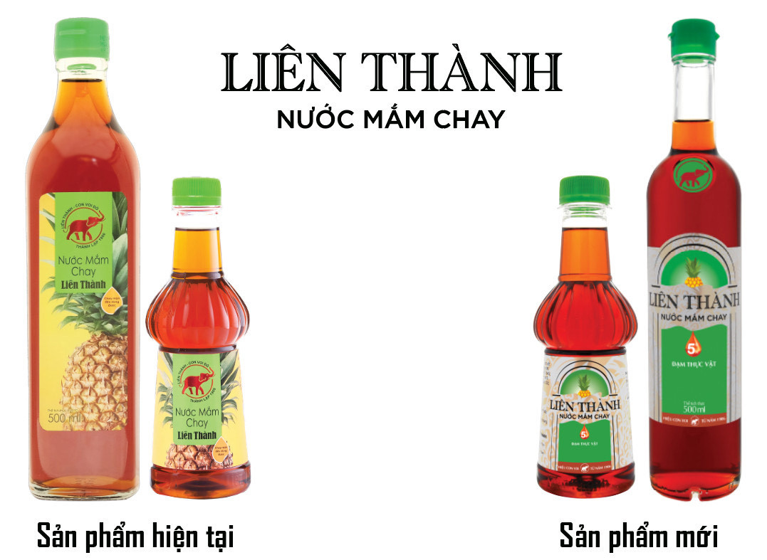 Ngoài chất lượng, Liên Thành cũng thay đổi hình thức bên ngoài, với chai mới hình tròn nhìn bắt mắt hơn hình vuông của chai cũ. Bên cạnh đó, dòng chữ “đạm thực vật” và hình trái thơm thu nhỏ trên chai thay thế dòng chữ cũ vẫn giúp người tiêu dùng nhận biết ngay nước mắm chay sản xuất từ nguyên liệu trái thơm.