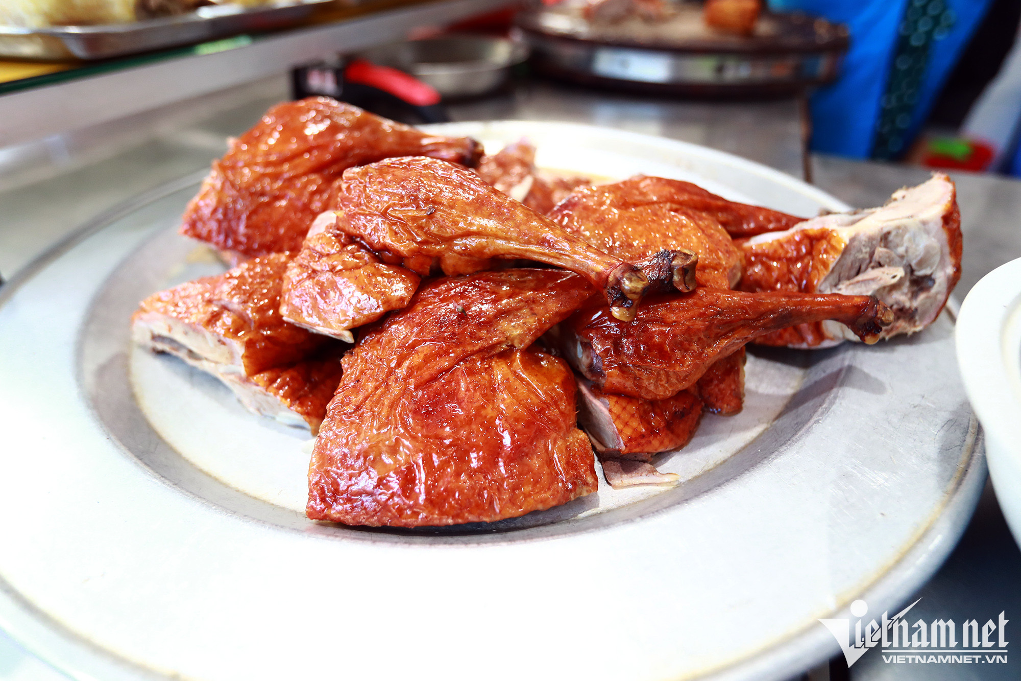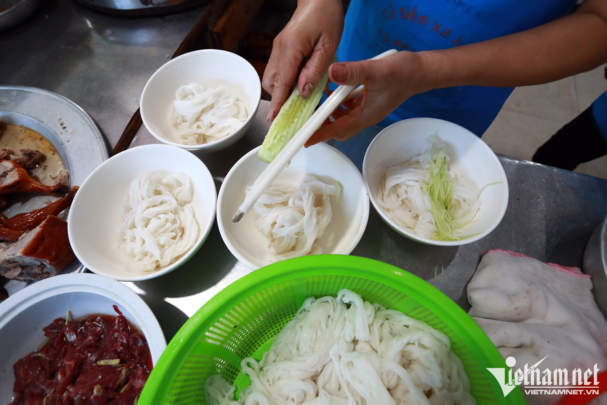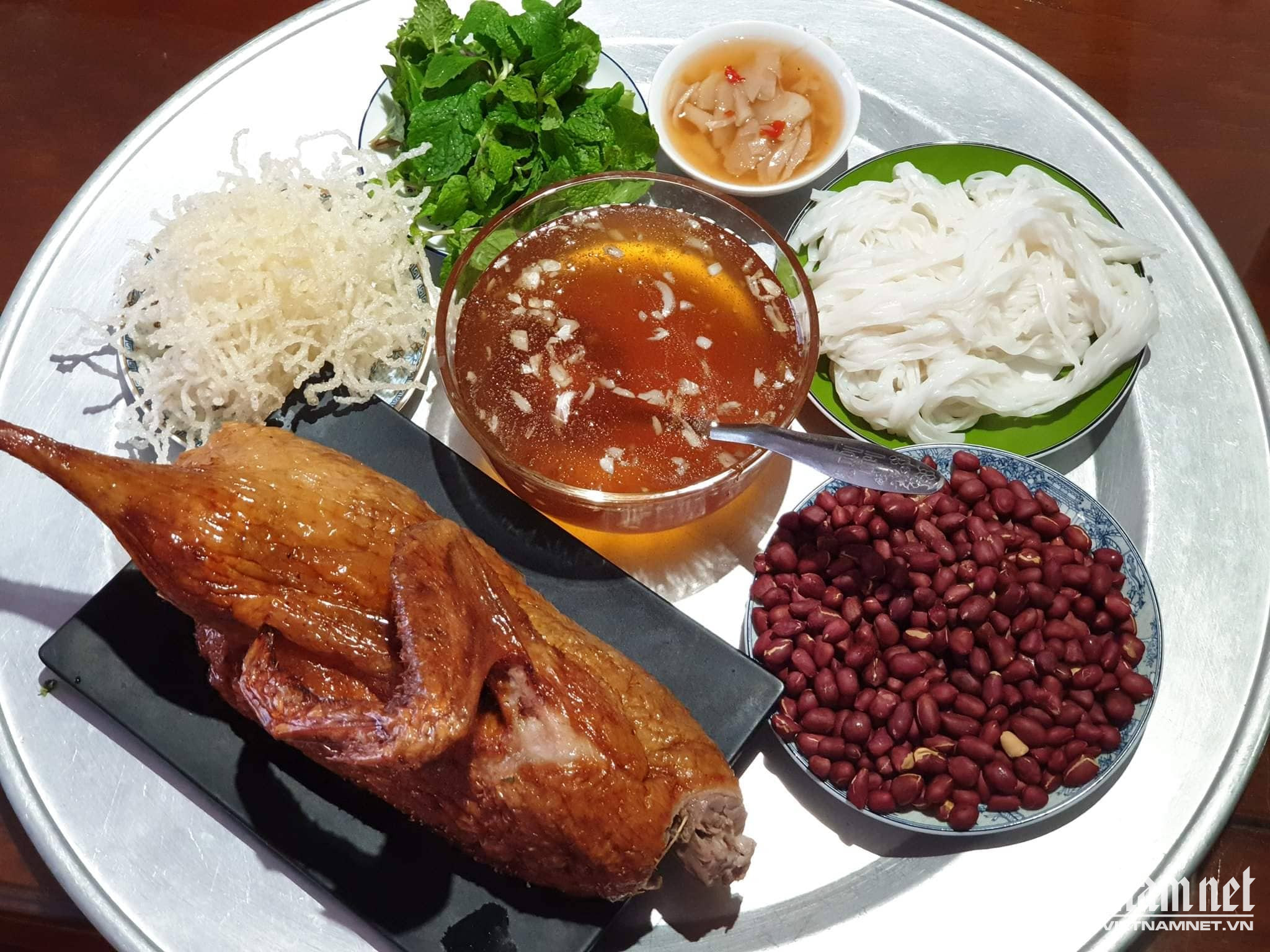 Một phần phở chua thường sẽ có bánh phở đi kèm đôi ba miếng thịt ba chỉ quay, thịt vịt quay, lạp xưởng thái mỏng, dưa chuột nạo sợi (loại dưa chuột "siêu to" được trồng tại Cao Bằng), khoai tàu (hay còn gọi là khoai môn, một nông sản nổi tiếng của Cao Bằng, củ khoai to, bở, thơm). Vịt phải chọn những con dày thịt, tươi ngon, bụng vịt được nhồi các loại gia vị như lá hoặc quả mắc mật, hạt dổi... rồi khâu lại, xoa thêm lớp mật ong lên da rồi đem quay. Nếu đầu bếp kì công sẽ làm thêm gan heo tẩm mật rán cháy cạnh (Ảnh: Phạm Hải)