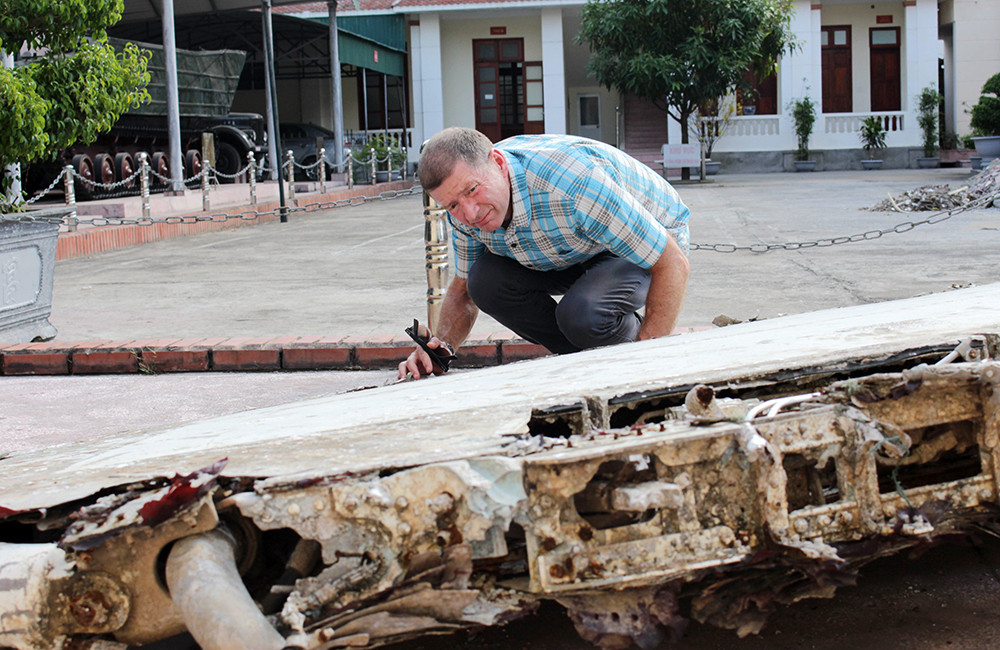 Thông qua những lần trò chuyện, biết bảo tàng đang trưng bày một phần cánh máy bay được ngư dân huyện Quỳnh Lưu (Nghệ An) trục vớt dưới biển nhưng không có thông tin gì, ông Thomas ngỏ lời giúp đỡ.