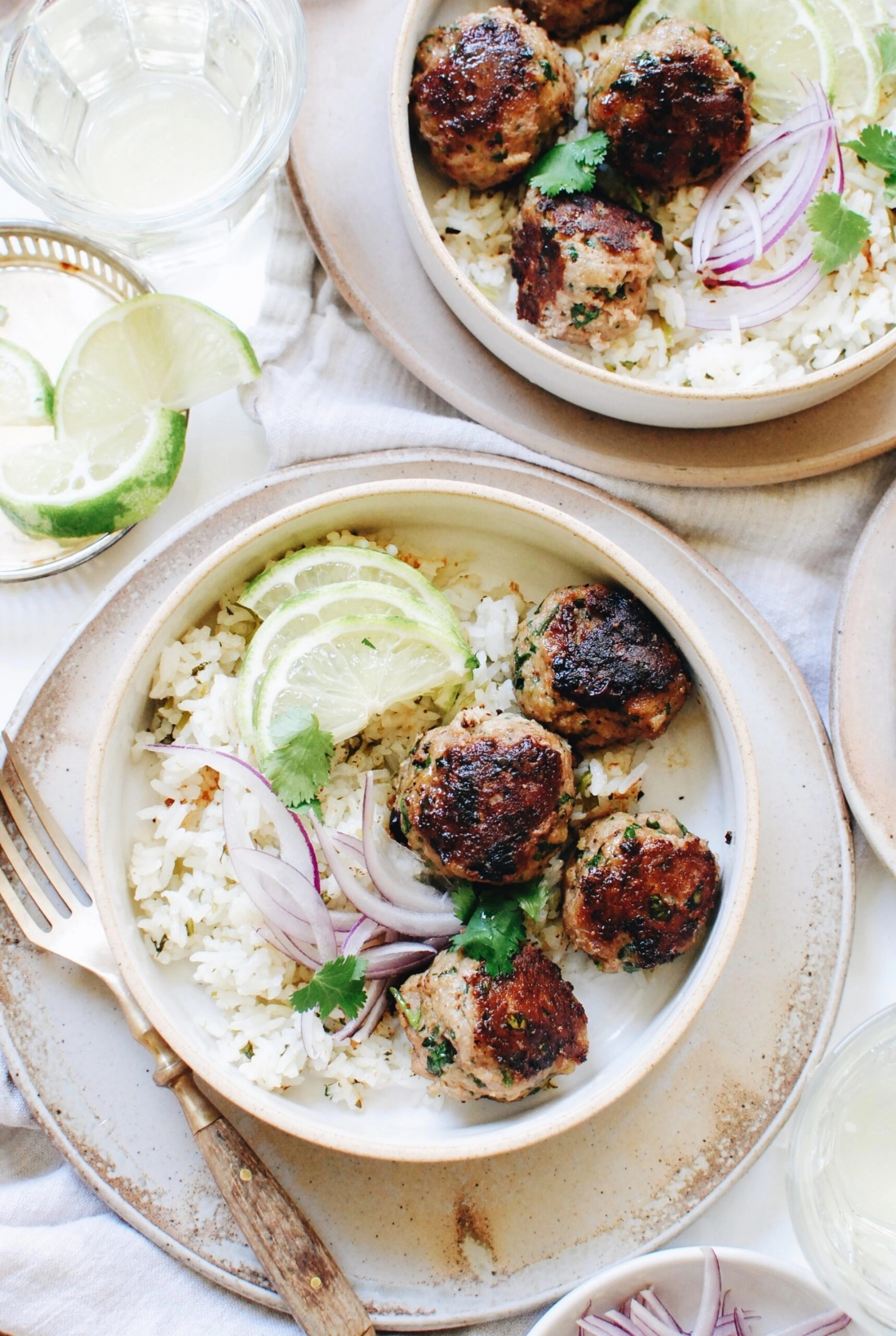 Công thức chế biến thịt viên được lấy cảm hứng từ ẩm thực Thái Lan. Món ăn hấp dẫn với đầy đủ hương vị quyện hòa. Bạn có thể thay thế thịt lợn bằng thịt gà xay hoặc thịt bò.