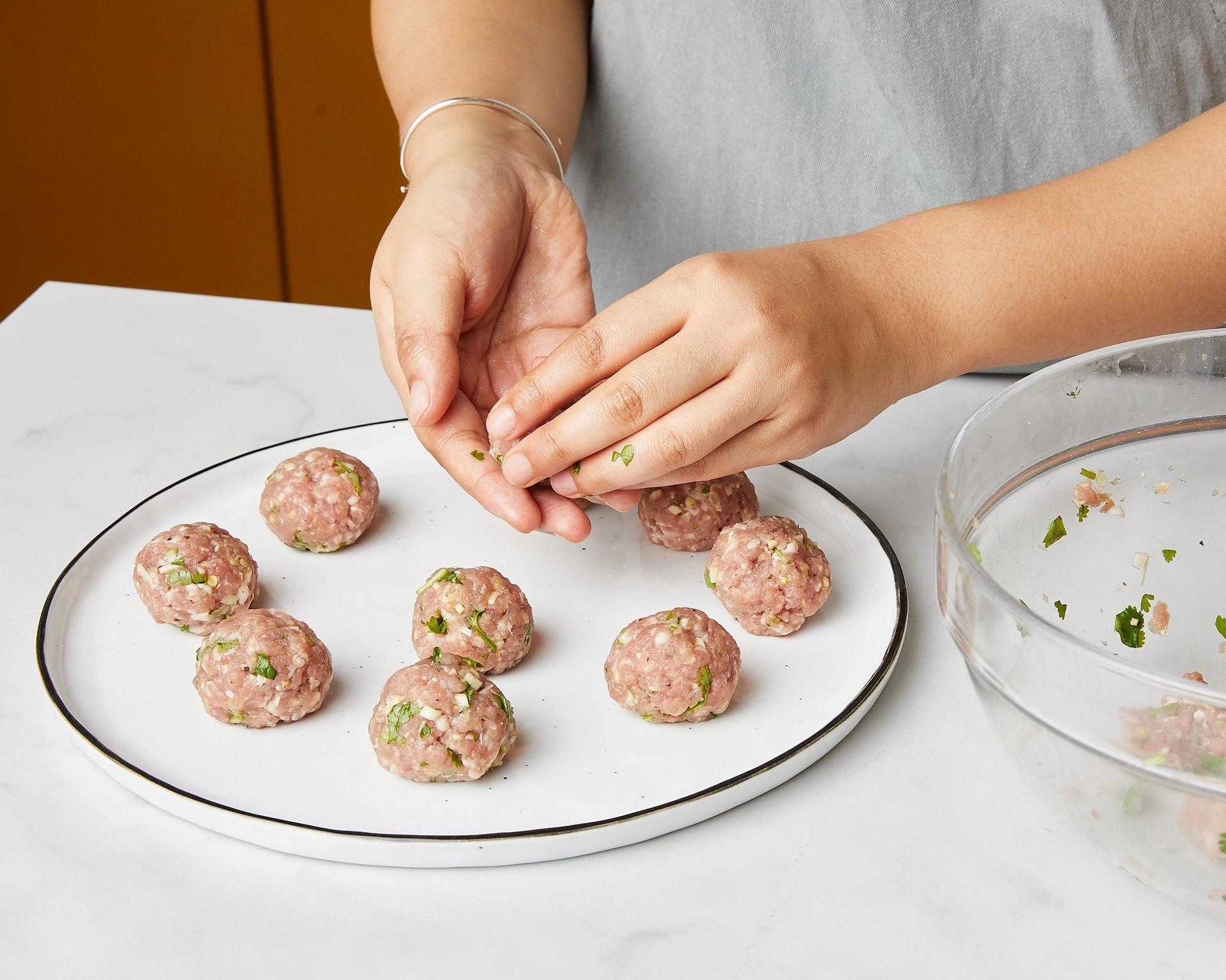 Dùng tay ướt nặn hỗn hợp thịt thành những viên nhỏ.