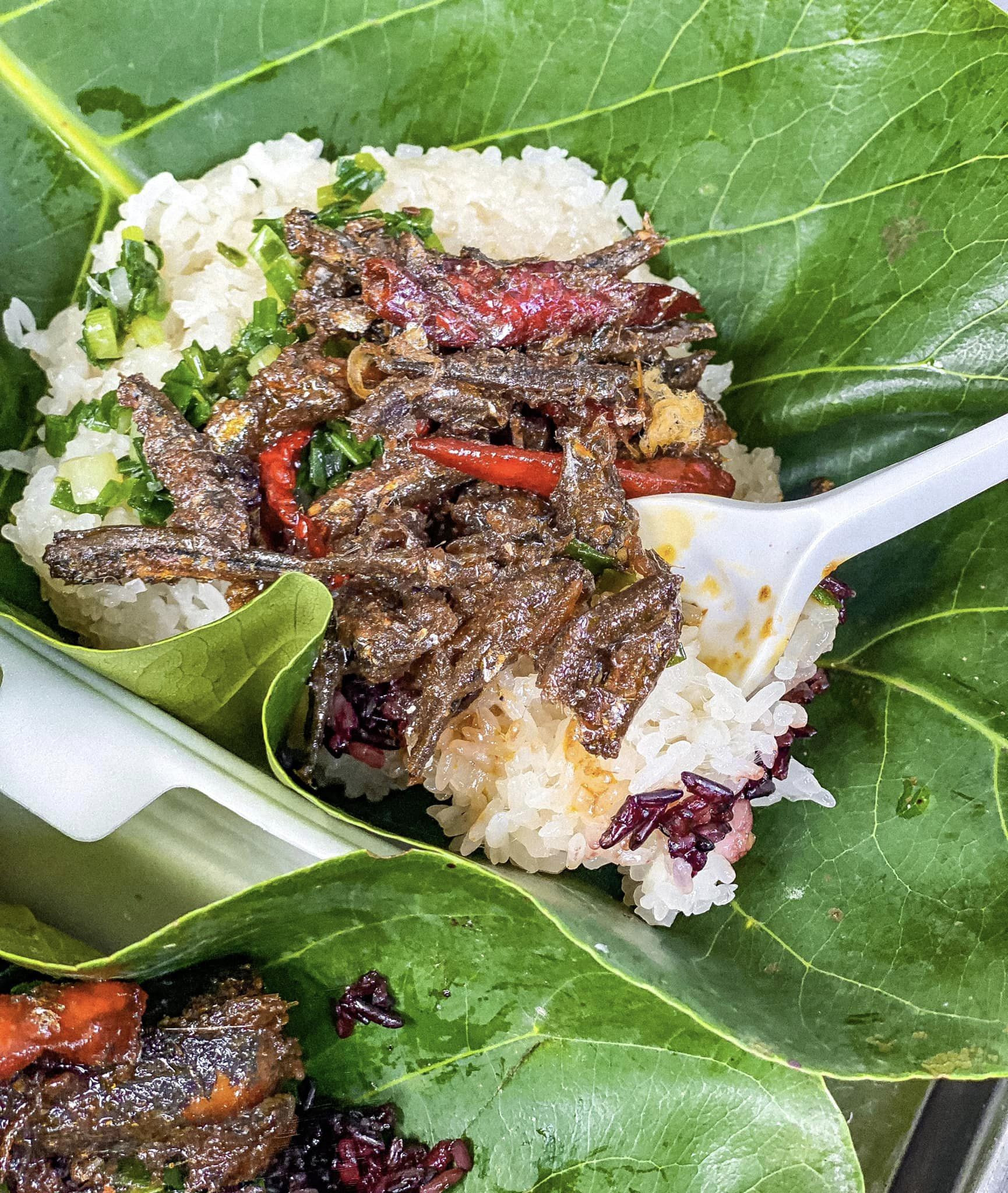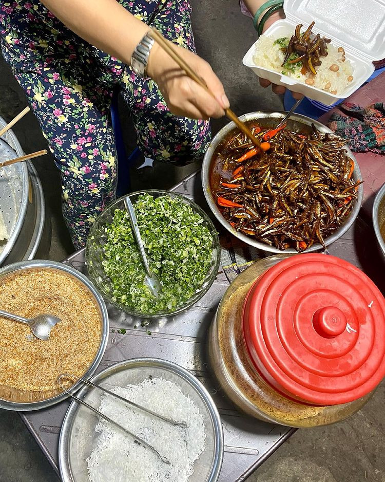 Vị dẻo thơm của xôi nếp với vị chua cay mặn ngọt của cá cơm và nước sốt đậm đà,... đủ kích thích vị giác của thực khách.