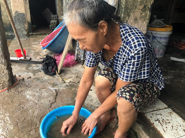 Được Hội Chữ thập đỏ huyện Giao Thủy dẫn đường, chúng tôi đến gặp bà Kha vừa đúng lúc bà đi mò ốc ngoài sông về để chuẩn bị bữa trưa cho cả nhà. Bên chậu ốc, bà run lập cập vì dầm lạnh lâu. Thấy có người đến thăm, bà ngại ngần vội đi thay bộ quần áo khác tươm tất hơn. Mặc dù vậy, bộ đồ bà mới thay ra cũng cũ kỹ, sờn rách chẳng khác gì trước đó.